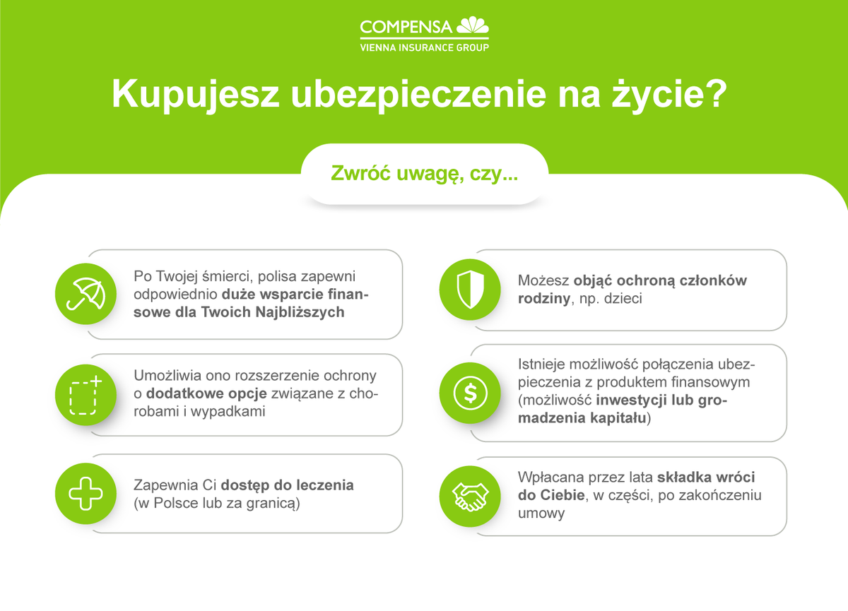- okres ochrony – ubezpieczenie na życie to produkt długoterminowy; zawierasz go np. na 10, 20 czy 30 lat,
