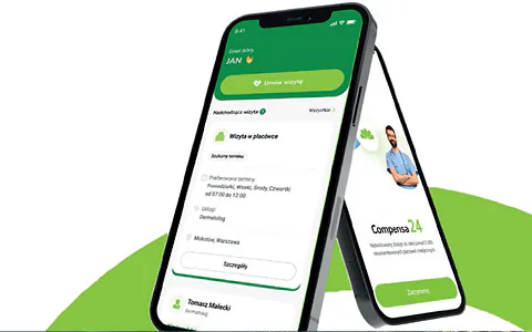 Załóż konto w aplikacji mobilnej Compensa24 oraz na Portalu Klienta: compensa24.pl i zyskaj szybki dostęp do usług medycznych: